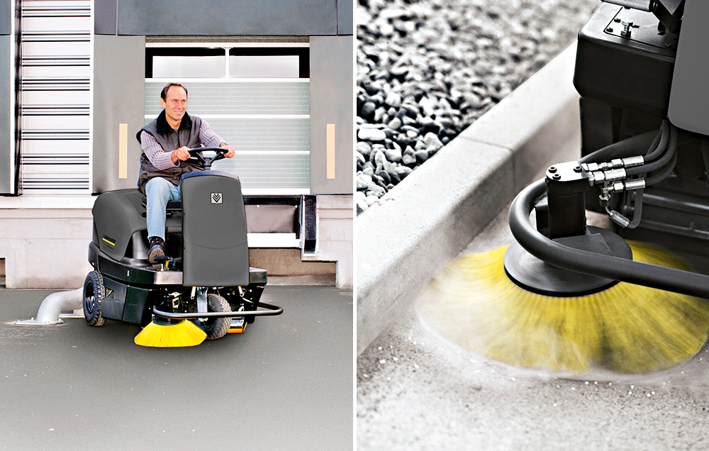• Cómoda y moderna barredora con conductor a bordo sentado para el uso profesional en superficies interiores y exteriores de 8000 a 10 400 m2/h.