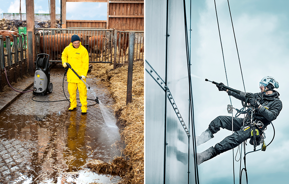 Las nuevas innovaciones garantizan un trabajo sin cansancio y un montaje y desmontaje rápidos: Mientras que la pistola de alta presión EASY!Force aprovecha la fuerza de retroceso del chorro de alta presión para reducir a cero la fuerza de retención, los cierres rápidosEASY!Lock permiten un manejo cinco veces más rápido que las conexiones por rosca convencionales sin repercutir negativamente en la robustez y la larga vida útil. La 10/25-4 S ha sido concebida para el uso diario en condiciones difíciles.