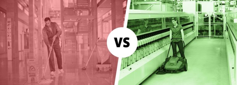 - Limpieza tradicional: Limpiar grandes áreas con una escoba o un trapeador manual es un proceso lento y menos eficiente. Un trapeador solo cubre un área limitada, lo que lo hace ineficaz para instalaciones industriales de gran tamaño.