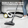 La aspiradora VC 3 ofrece limpieza eficiente y sin complicaciones en un formato compacto. Su tecnología multiciclónica mantiene una succión potente sin necesidad de bolsas, y su depósito de 0,9 L transparente se puede lavar fácilmente, evitando olores desagradables y gastos permanentes . El filtro HEPA 12 retiene hasta el 99,5 % de partículas finas como polvo y polen, contribuyendo a un aire más saludable, mientras que el nivel de ruido permite su uso diario sin molestias