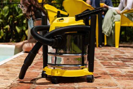 La aspiradora WDL 1s aspira polvo, absorbe agua y tiene una función de soplado, asegurando una limpieza completa para diferentes superficies y ambientes.