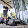La barredora manual KM 70/20 C 2SB limpia con dos cepillos laterales y un rodillo barredor. En combinación con el accionamiento manual, la limpieza de espacios interiores y exteriores resulta sencilla y eficiente: el rendimiento de superficie de la KM 70/20 C 2SB es 9 veces superior al de una escoba. El rodillo barredor se puede ajustar en 6 niveles y, en combinación con los cepillos laterales de ajuste continuo, consigue un resultado de limpieza óptimo en diferentes suelos. El filtro utilizado permite barrer prácticamente sin polvo. Un asa de empuje regulable en altura y el sistema Home Base para transportar equipos adicionales como cubos y recogedores de basura garantizan un manejo ergonómico. De este modo, se pueden eliminar los residuos junto con el polvo y la suciedad en un solo paso. Una vez finalizado el trabajo, la KM 70/20 C 2SB se puede guardar ahorrando espacio en su posición de estacionamiento.