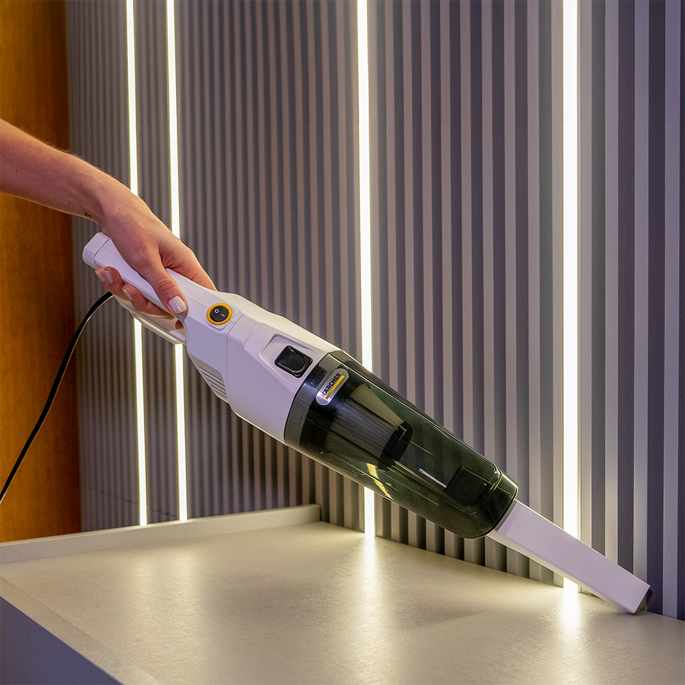 La aspiradora CVL 1 destaca por su eficiencia y versatilidad en la limpieza del hogar, siendo fácil eliminar polvo, residuos y suciedad gracias a su potencia. Su mango está diseñado ergonómicamente, lo que reduce el esfuerzo al sostenerla y facilita el manejo, permitiendo un control más preciso, especialmente en áreas difíciles de alcanzar. Con un depósito de 600 ml, la CVL 1 ofrece mayor autonomía, evitando vaciar el recogedor constantemente. Además, su sistema de apertura del compartimiento permite vaciarlo de forma limpia, sin esparcir la suciedad.