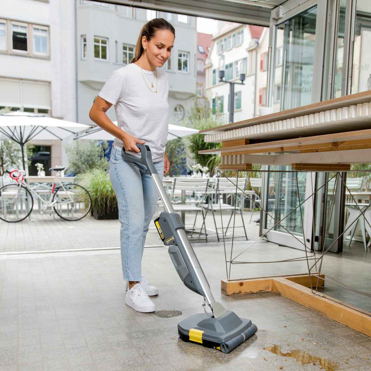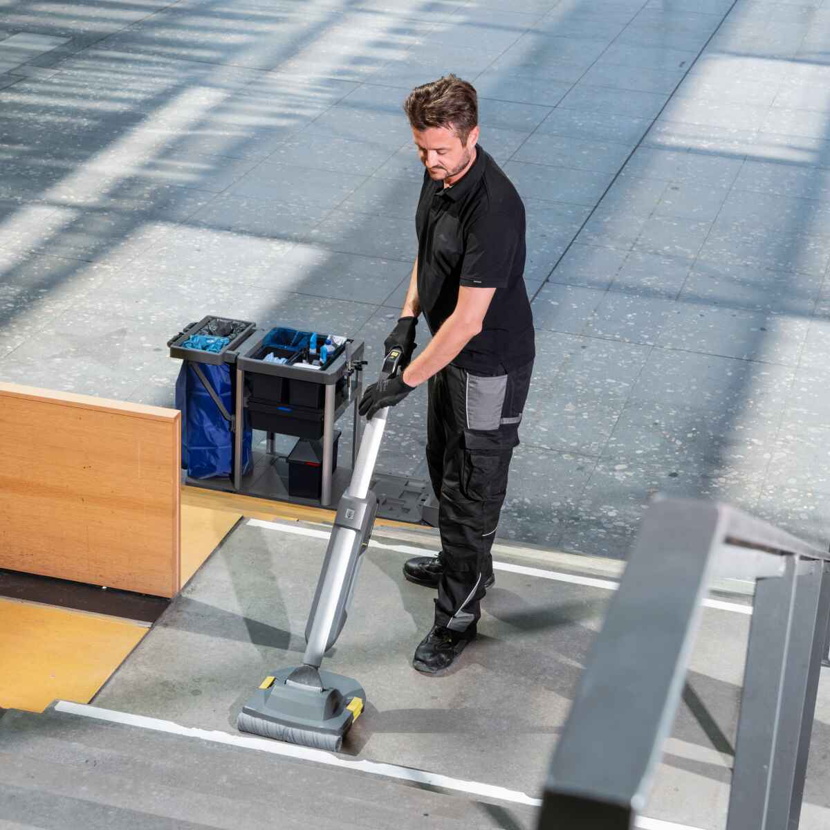 La fregadora BR 30/1 C Bp Pack es una compacta fregadora-aspiradora a batería, ideal para una limpieza higiénica de suelos duros, incluyendo baldosas y pavimentos de seguridad. Equipada con tecnología de rodillos de microfibra, ofrece hasta un 20% mejores resultados de limpieza y reduce los tiempos de secado en un 60% en comparación con la limpieza manual. Impulsada por una potente batería de iones de litio de 18 voltios del Kärcher Battery Universe, es especialmente adecuada para la limpieza de mantenimiento en espacios pequeños como oficinas, tiendas, consultorios, bufetes, hoteles, restaurantes, comedores, escuelas y hospitales. También puede utilizarse con el limpiador desinfectante Kärcher RM 732 para desinfectar los suelos.