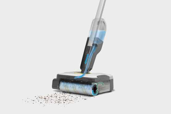 Ahorro de tiempo del 50 %: la tecnología de recogida de suciedad gruesa permite limpiar sin tener que aspirar antes. Recogida óptima de pelos gracias al filtro integrado. Limpieza optimizada de los bordes gracias al diseño exclusivo del cabezal para suelos.