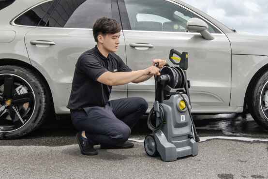 Sólo un interruptor de encendido/apagado para un funcionamiento infalible. El enrollador de manguera ofrece un gran confort y un tiempo de instalación reducido. Pistola de gatillo ergonómica y sin esfuerzo que es cómoda de usar.