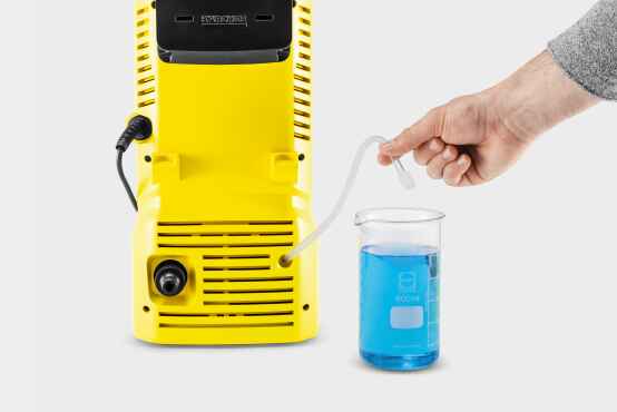 Manguera de aspiración para el uso de detergentes. Los detergentes de Kärcher incrementan la eficacia y prolongan con protección y conservación la satisfacción con el resultado.