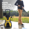 La hidrolavadora K4 es ideal para la limpieza intensiva, diseñada para ahorrar tiempo y hasta un 80% de agua. Incorpora un motor de inducción y un cabezal de aluminio para mayor durabilidad, y está pensada para un uso semanal de hasta 6 horas. Tiene beneficios clave como eficiencia y ahorro por una limpieza rápida y sencilla, ahorrando tiempo y hasta un 80% de agua. Durabilidad gracias a su motor de inducción y cabezal de aluminio garantizan una vida útil prolongada y robustez al ser diseñada para uso diario y limpieza intensiva (hasta 6 horas semanales). Por último, facilidad de uso por su asa ergonómica para un transporte seguro y operación sencilla.