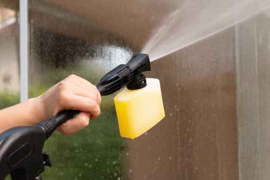 La hidrolavadora tiene un aplicador de detergente incluido, que rocía y esparce el producto uniformemente, cubriendo grandes áreas de manera rápida y eficiente.