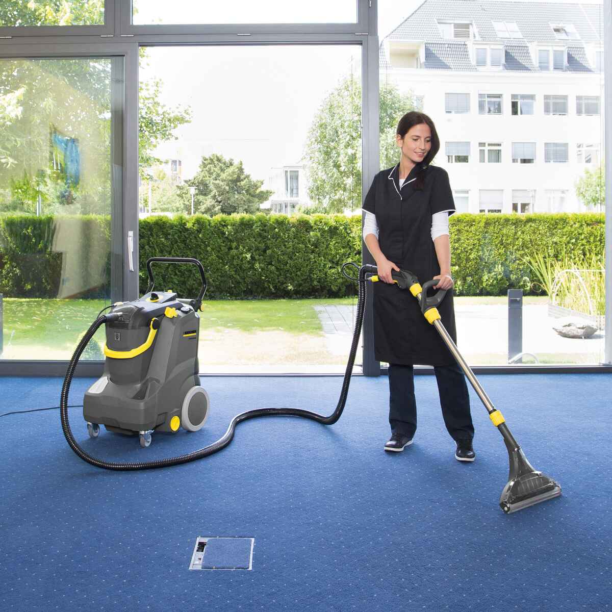 La lava tapices Puzzi 30/4 es la solución de limpieza económica para grandes superficies textiles y garantiza un trabajo ergonómico, sin esfuerzo y que ahorra tiempo.