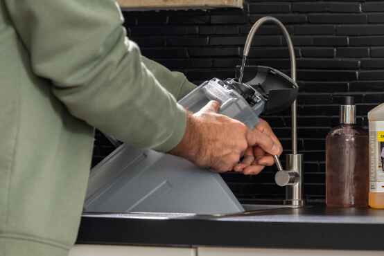 Fácil llenado y vaciado del depósito de agua limpia sin tener que abrir la lava-aspiradora. Depósito translúcido y resistente a los golpes para una larga vida útil. Inserción sencilla del depósito de agua limpia en el equipo.