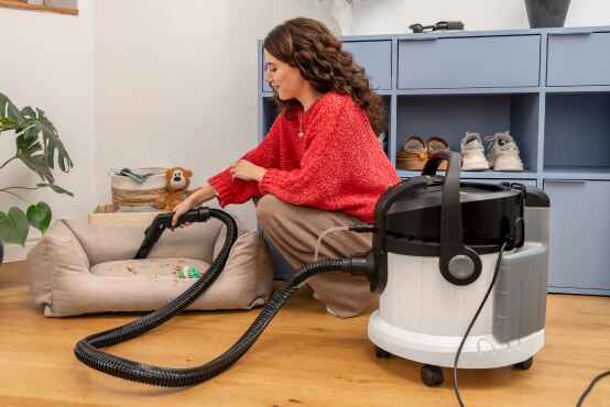 La lava tapices SE 4 limpia profundamente fibras textiles como alfombras y tapicerías. Su tanque de agua de 4 L extraíble y diseño compacto con asa 3 en 1 facilitan su uso y almacenamiento.