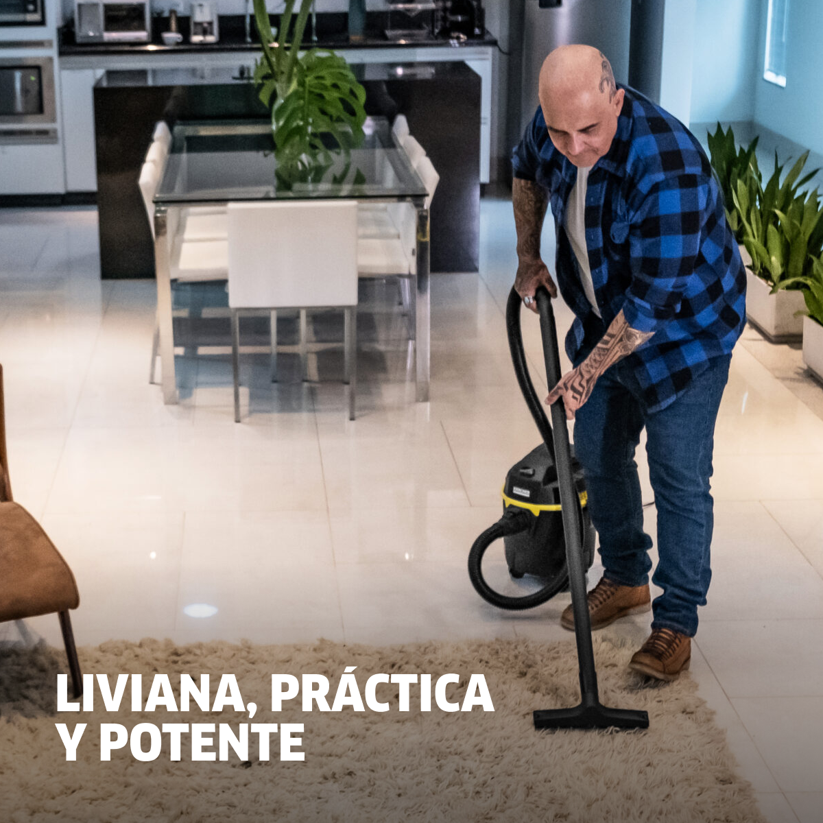 La aspiradora WDL 1 Black es una solución integral para la limpieza. Con un peso de solo 2,7 kg, su diseño compacto facilita el transporte y almacenamiento en espacios reducidos. Su potente motor ofrece una succión eficiente para aspirar polvo, suciedad y líquidos, mientras que su función de soplado permite tareas adicionales como inflar colchones de aire o limpiar áreas de difícil acceso.